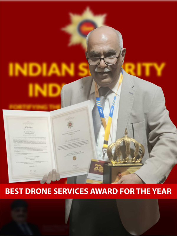 I must share my joy and satisfaction in getting the most recognized award of Private Security Industry of India by Central Association of Private Security association of India (CAPSI) in the field of DRONE SERVICES