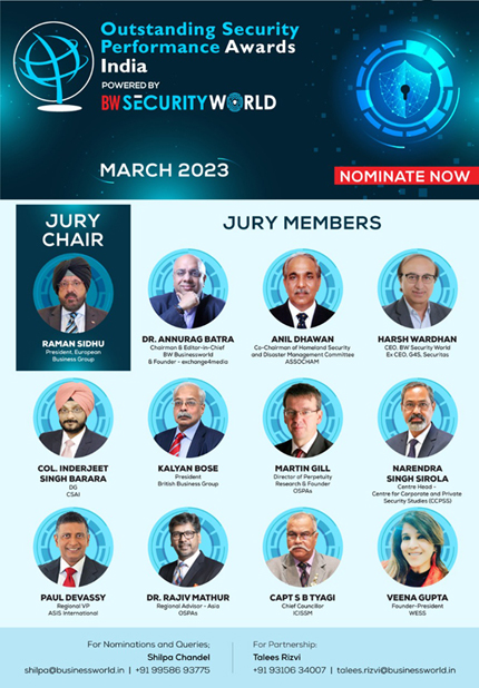 The Outstanding Security Performance Awards (OSPAs) recognize and reward companies and individuals across the security sector. The OSPAs are designed to be inclusive and independent, delivering an opportunity for outstanding performers, buyers, or suppliers, to be recognised and their success to be honoured. The OSPAs scheme provides an opportunity for countries to run their own evidence-based schemes while maintaining the potential to compete in the future on an international level, ‘World OSPAs’ OSPAs India in association with BW Security World is organizing its third edition of OSPAs on 25th March 2023 at The Park, New Delhi.