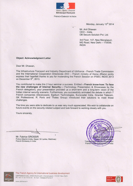 French Delegation at IFSEC 2013 India 5th - 7th December 2013