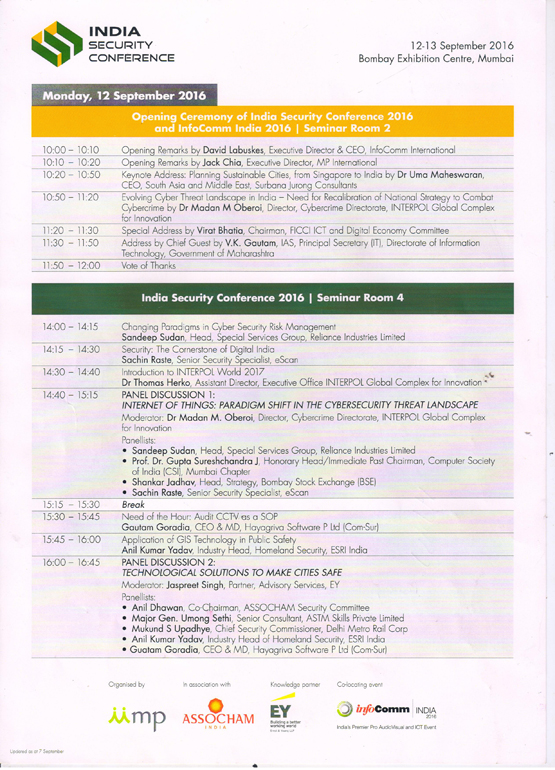 We have just concluded our two-day conference on 5th Homeland Security Conference and Exhibition at Hotel La - Shangri-La with your team lead by Senior Director – Mr. Ajay Sharma.