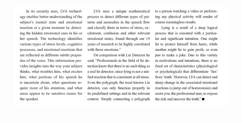Mr. Amir CEO and Founder of Nemesysco explains that his team is dedicated to developing advanced and non-invasive investigation and security tools, fraud prevention solutions, CRM applications, consumer products and psychological diagnostic tools. All Nemesysco’ s products and services are based on Layered Voice Analysis (LVA), our proprietary and patent protected voice analysis technology.